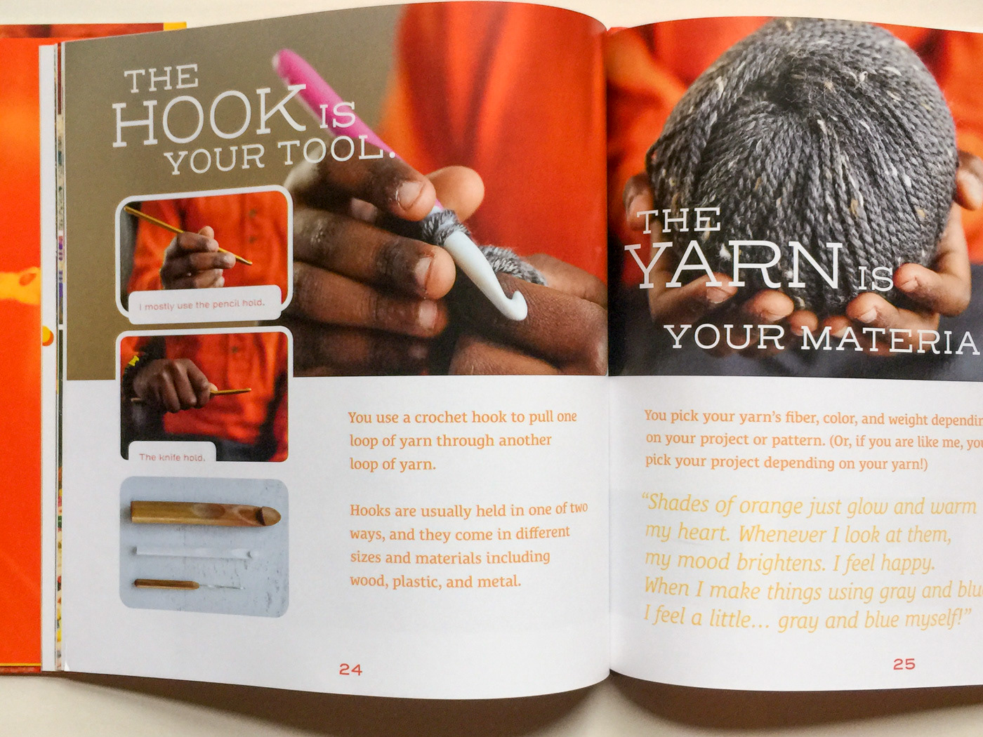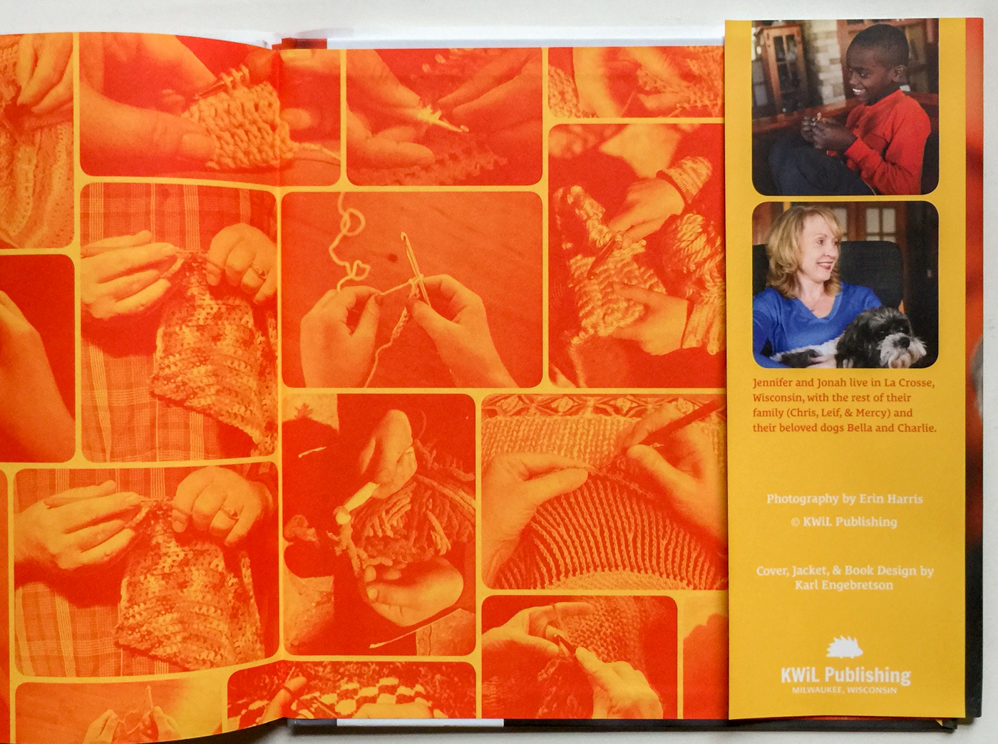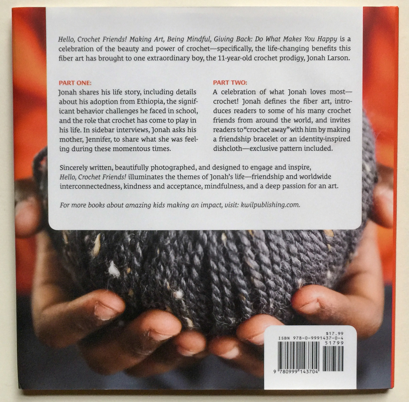 Book design for Hello, Crochet Friends! Making Art, Being Mindful, Giving Back: Do What Makes you Happy by Jonah Larson. Mix of Crochet introduction and life story of young, savant of crochet, Jonah Larson. Design incorporated illustration, custom typography, and special run for the end papers—building a sense of the crochet community.